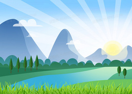 春天太阳升起创意风景背景元素