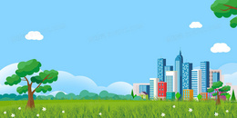 绿色环保城市卡通背景