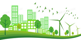 绿色扁平卡通风题材城市轮廓背景插画