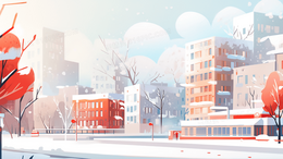 冬季城市下雪天街道建筑插画