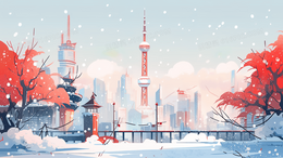 > 冬季城市下雪天公园古典建筑插画