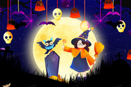 手拿南瓜灯的魔法女孩万圣节节日插画
