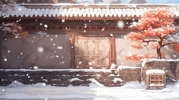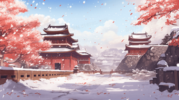 中国风建筑冬天雪景唯美古风插画