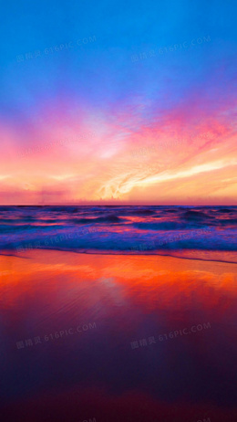 海边沙滩黄昏夕阳背景H5背景素材