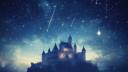 蓝色卡通治愈风星空中的城堡背景