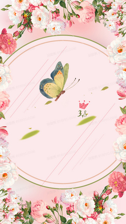 女神节鲜花蝴蝶边框H5促销海报背景下载