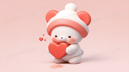 > 可爱3D小熊抱爱心插画