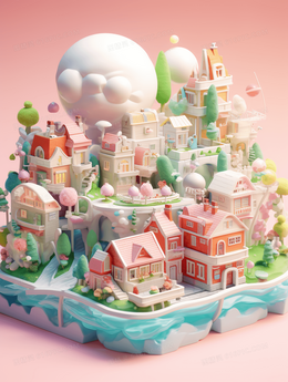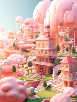 当前位置: 图精灵 > 背景图库 > 插画 > 3D立体粉色卡通城堡玩具模型插画