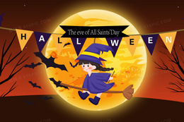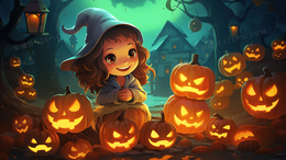 手拿南瓜灯的魔法女孩万圣节节日插画