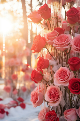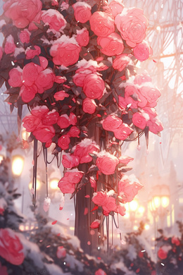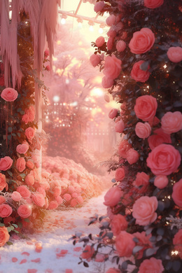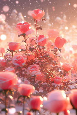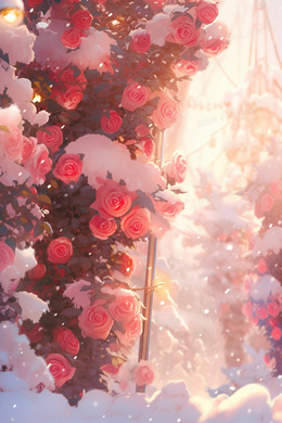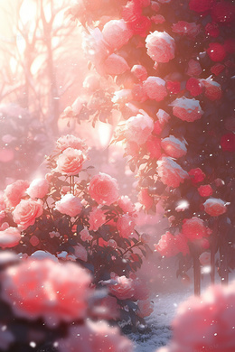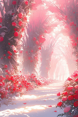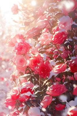 娇艳欲滴的冬天红玫瑰花海风景插画