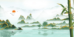中国风竹子国潮鎏金山水背景