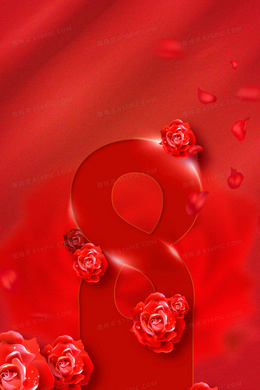 红色浪漫唯美38女神节化妆品促销海报背景