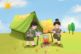 新学期学生军训系列之户外野营插画