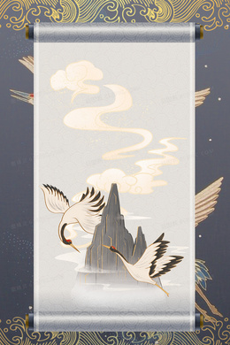 > 国风仙鹤画卷合成背景