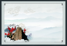 新中式经典湖蓝简约中国风剪纸祥云背景