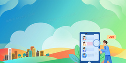 膨胀风3D立体招聘背景卡通简约边框招聘背景