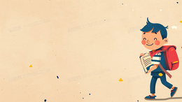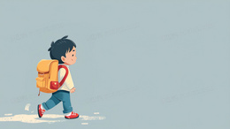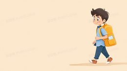 彩色卡通极简风背着书包上学的学生插画