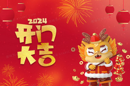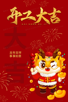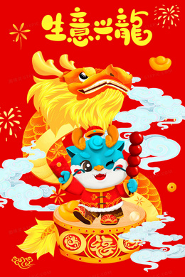 2024龙年小龙人IP开工大吉红色喜庆插画