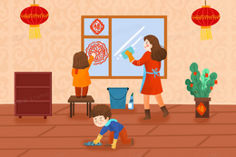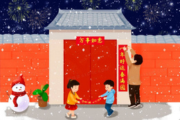 橘黄色扁平化迎新春庆小年小龙人IP创意插画