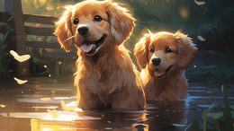 卡通可爱金毛小狗草地森林保护动物插画