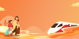 黄色手绘复古春运新年合成背景