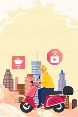 黄色手绘卡通送外卖合成背景