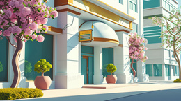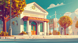 > 街道店铺场景插画