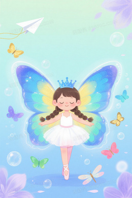 浅青蓝薄荷绿渐变童话插画背景