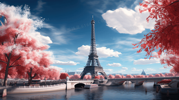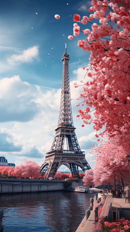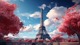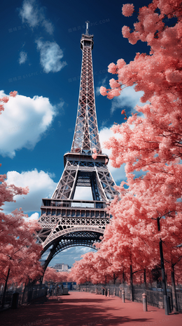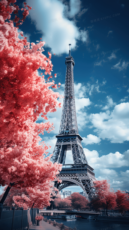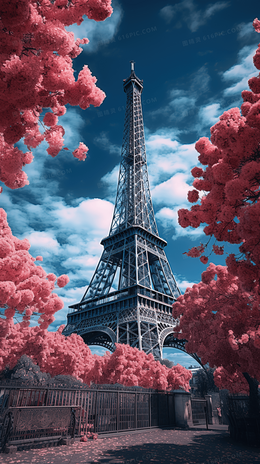 > 法国著名景点巴黎铁塔唯美风景概念图片