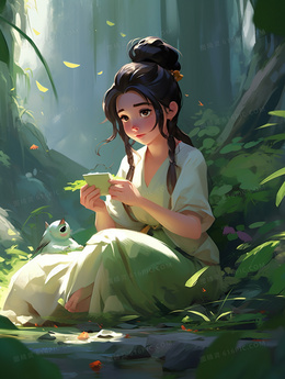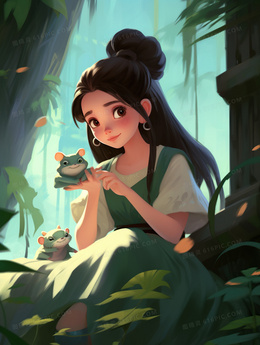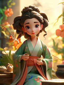 卡通中国风少女3D人物插画