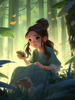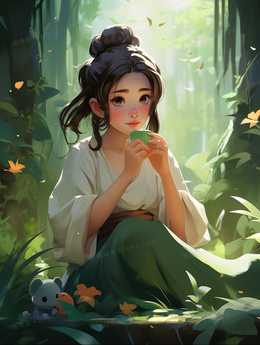 卡通中国风少女人物形象插画