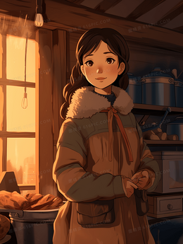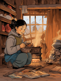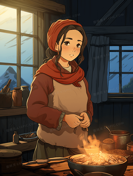 当前位置: 图精灵 > 背景图库 > 插画 > 乡村房屋厨房里烧火的女孩插画