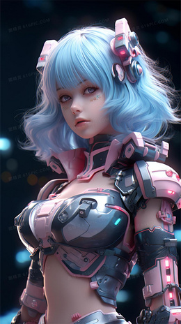 漫画风可爱的蓝发机甲女战士3D模型