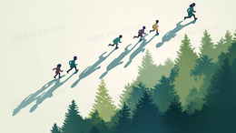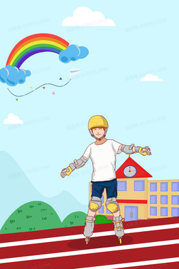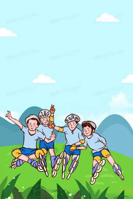 简约手绘清新卡通绿色人物户外运动轮滑背景