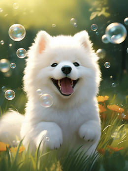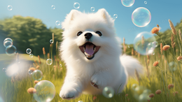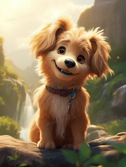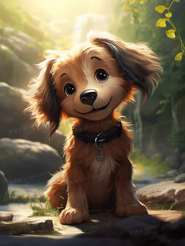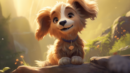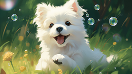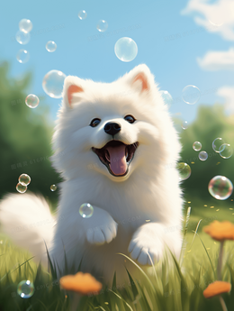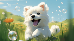 > 卡通可爱小狗在草地玩耍保护动物插画