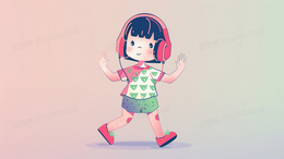 手绘唱歌音乐女子H5背景