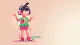 彩色手绘听音乐的儿童背景