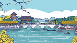 唯美手绘建筑拱桥风景插画