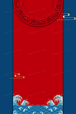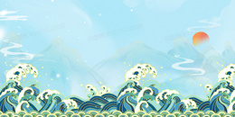 蓝色中国风海浪国潮背景
