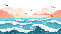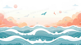 > 蓝色中国风海浪背景