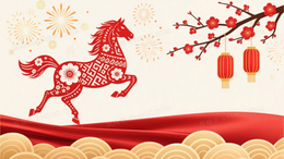 米白底浅金波浪红梅宫灯祥云背景