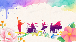 蓝紫粉渐变水彩乐队剪影背景