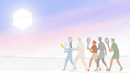 蓝紫粉渐变水彩网球剪影背景