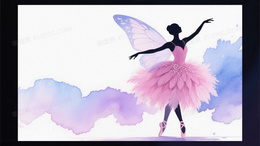蓝紫粉渐变水彩芭蕾舞者背景