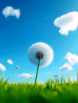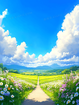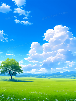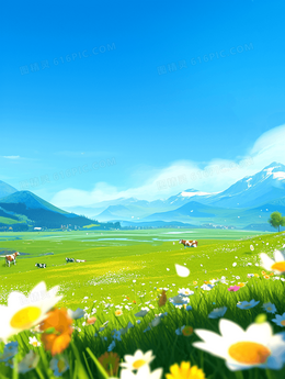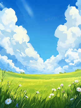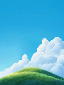春天卡通蓝天白云草地背景