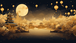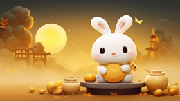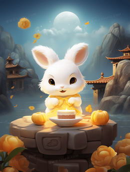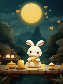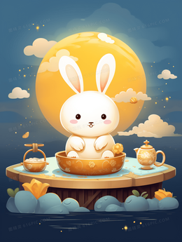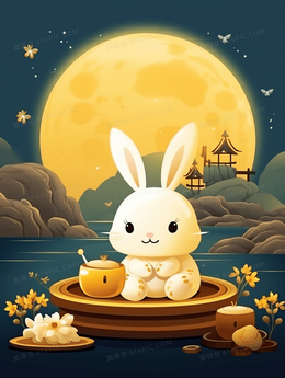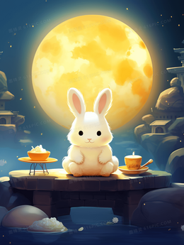 中秋节圆月下的玉兔中国风插画