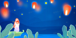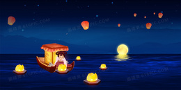 当前位置: 图精灵 > 背景图库 > 插画 > 中元节女孩船上放河灯手绘插画