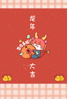 新年红色龙年文字手机壁纸背景