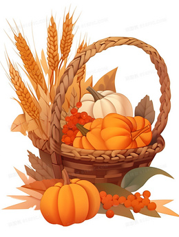 卡通丰收的南瓜和麦穗插画