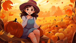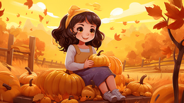 感恩节女孩南瓜田野秋天插画